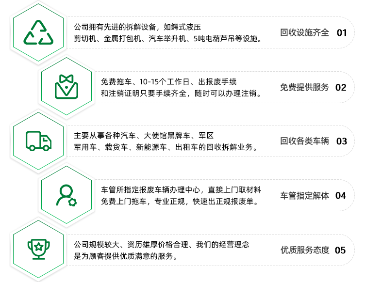 在宜春市有着二十余年的拆解经验,是经国家商务部批准的正规宜春报废汽车解体单位,具有《报废汽车回收企业资格认定书》的正规报废车回收公司,公司是严格按照国家节能环保要求进行验收拆解报废车的合格单位,在拆解报废车方面严格遵照《汽车拆解指导手册》进行,确保在拆解报废汽车的过程中做到安全环保绿色拆解。在宜春市主要从事:宜春报废车回收、报废汽车拆解、大客车报废解体、出租车报废解体等一系列报废汽车服务。